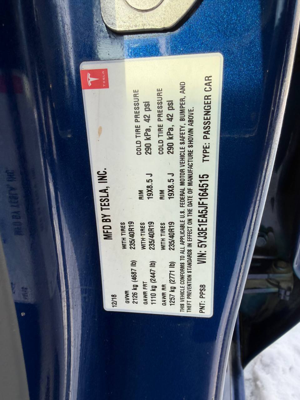 TESLA MODEL 3 MR RWD, 2018